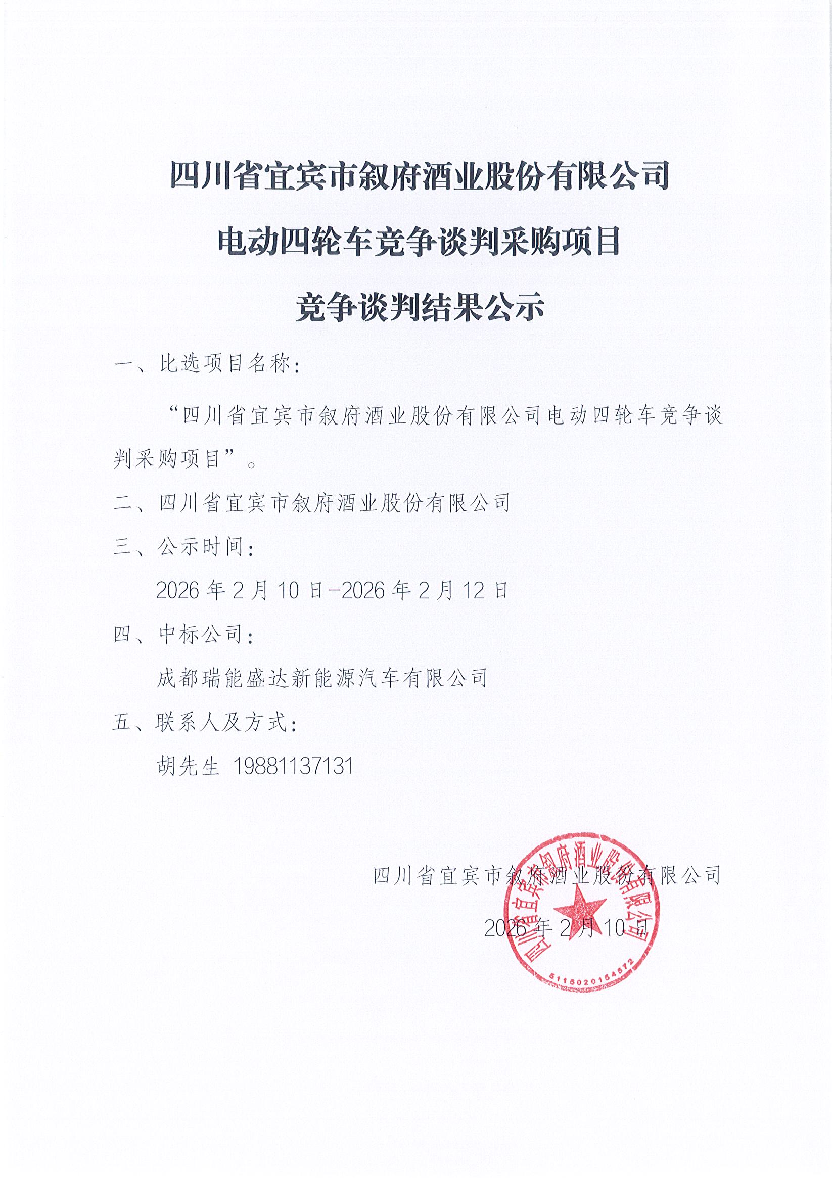 四川省宜宾市叙府酒业股份有限公司电动四轮车竞争谈判采购项目